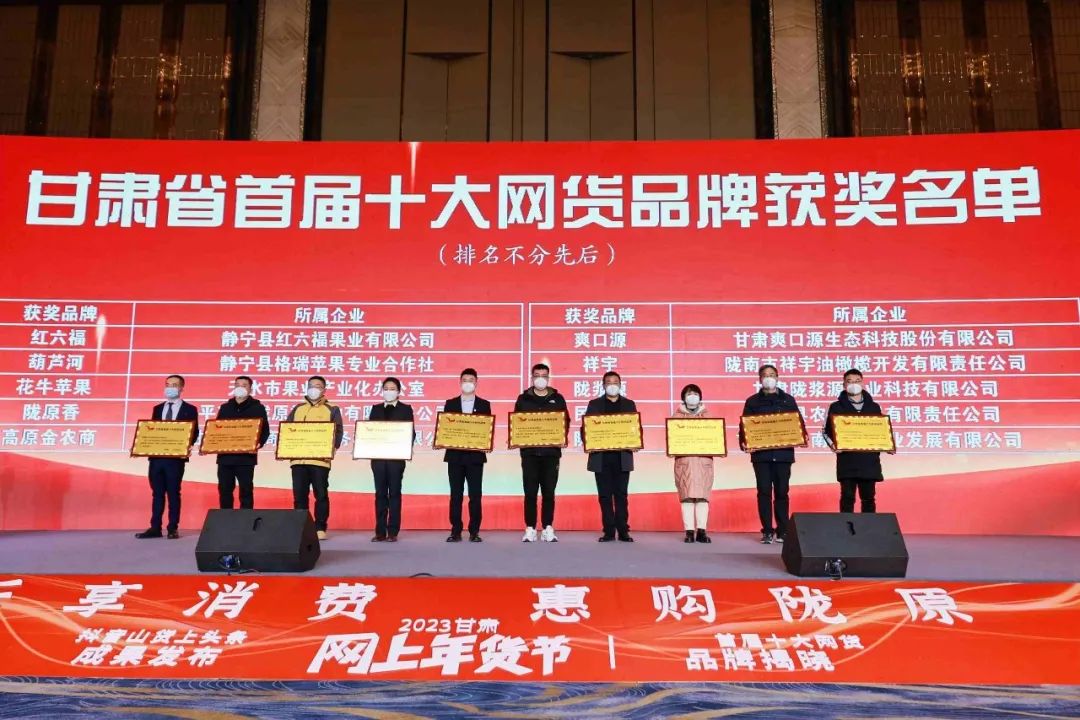 2023甘肅年貨節(jié)活動(dòng)正式啟動(dòng),活動(dòng)現(xiàn)場(chǎng)宣布“甘肅省首屆十大網(wǎng)貨品牌”評(píng)選結(jié)果,并現(xiàn)場(chǎng)為獲獎(jiǎng)企業(yè)頒獎(jiǎng) 。