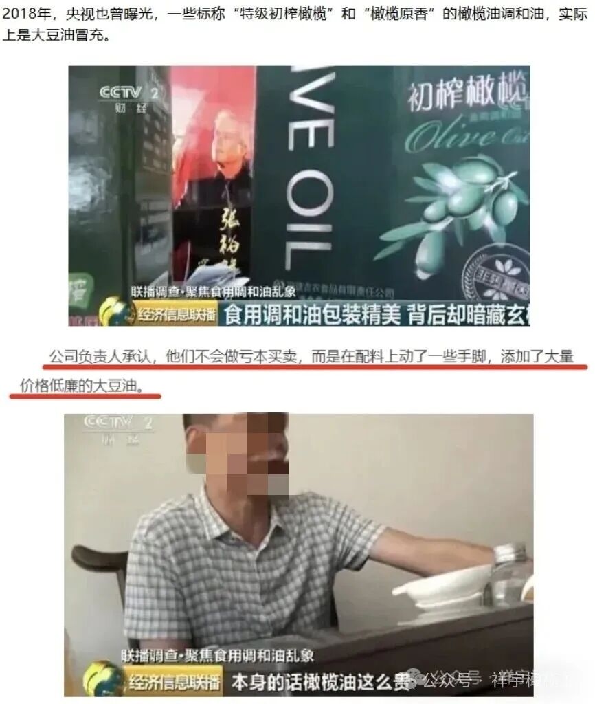 等級造假:將“精煉橄欖油”“調和橄欖油”,偽造檢測報告,冒充“特級初榨”,欺騙消費者。